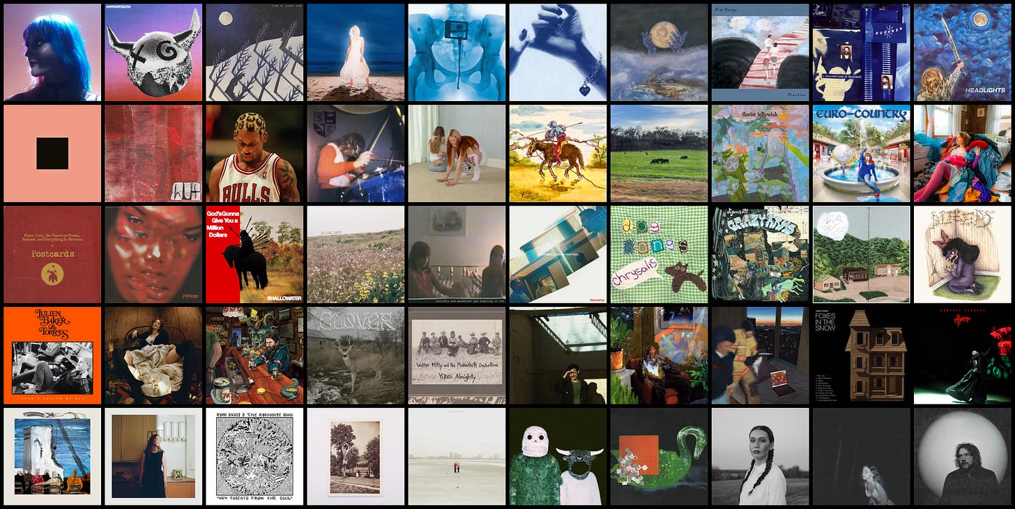 Second of all: Let me re-introduce myself. I’m Gannon. I’m a writer and I talk about music for a living. I love 90’s pop-rock and DIY emo and alt-country and complicated hometown relationships and romance and the Minnesota Vikings and squirrels and hope and you. I love giving up just when things start to get good, and I love coming back right before they get worse. I love “Sparkle Song” by Florist and these 20 albums from 2025.